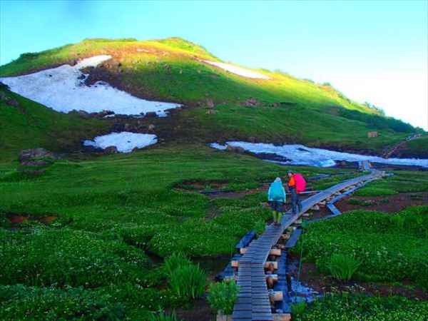 朝日の光で山が黄金に輝く