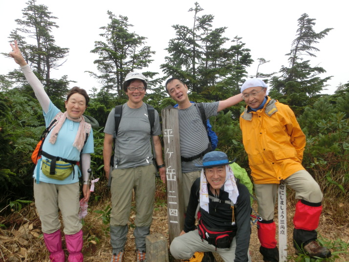 平ヶ岳頂上に着き、ほっと一息、みんな笑顔