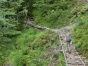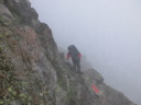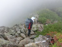 コメント 南アルプスの縦走をした。1日目は鳥倉登山口から入り、三伏峠小屋に泊った。登りやすい道だった。2日目は、曇り空 の中、塩見岳を目指した。先頭を行くYさんが早く登るので、付いていくのに必死だった。塩見小屋を過ぎてから登りが 続き、頂上近くの岩場は長く、雨で滑ったりして、大変な思いをした。しかも、ルートがわかりにくいところがあり、探しな がら登った。特に塩見岳東峰はピークが見つからず辺りを見回してやっと見つけた。視界はゼロだった。北荒川岳に登 り、その後はマルバダケブキの群生しているなだらかな道を通ったりして、9時間かけて熊ノ平小屋に着いた。3日目は、 朝から強風が吹き、雨も降りだした中を、間ノ岳に向かった。岩場をトラバースしながら進み、頂上に着いた。北岳山荘 まで来たら、急に雨が激しくなったので、1時間ほど雨宿りをさせてもらい、早い昼食にした。意を決して雨と強風の中、 出発した。向かい風になると、雨が顔に当たり痛かった。強風で体を持っていかれそうになったが、何とか踏ん張り、前 に進んだ。それでも12時には北岳の頂上に立つことができた。最後の登りの鎖・梯子の辺りが、きつかった。ゆっくり下 山し、無事に御池小屋に着いた。4日目は広河原まで下りた。広河原から甲府に行くバスは、通行止めのため、行けな かった。奈良田行きのバスがしばらく出ないということがわかり、タクシーで奈良田まで行き、バスで下部温泉駅に出た 。温泉にゆっくり入り、家に帰った。曇りと強風と雨で視界がない中、最後まで登り通すことができ、満足であった。 Y/S記 |