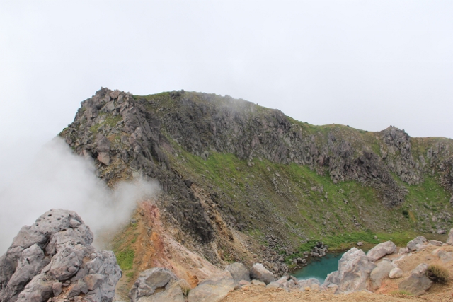 北峰からの南峰 火口湖を挟んで南峰は立ち入り禁止です