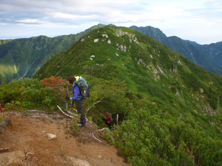 10赤谷山を振り返る、赤谷山の向こうは毛勝3山