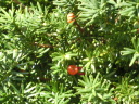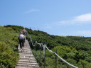 | コメント 友だちと二人で8日の夜行バスに乗って、9日の朝、米子に着きました。バスで大山寺終点まで行き、そこから登り始め ました。とても良い天気で、大山が大きく見えました。夏山登山コースを登ったのですが、ずっと急な上り坂でした。階段 がほとんどで登りやすいのですが、結構な急登でした。一合目から九合目まで標識があったので、目安になりました。 登るほどに視界が開け、海も見え、風力発電をしている海沿いまでよく見渡せました。 八合目からは木道になり、ダイセンキャラボクの群生でした。赤い実がついていました。この実は食べられるそうです が、種には毒があるということでした。 頂上は広々としていて、良い眺めでした。小学生がたくさん登っていました。頂上の剣ヶ峰は、登山禁止でした。岩肌が 削られていました。下りは「五合目行者別れ」から行者谷コースを進み、急な下りの階段をどんどんと下りていきました。 ほとんど人には会わず静かでした。大神山神社奥宮に着き、お参りをして元の大山寺に戻りました。下りてから眺めた 大山は、風格のあるどっしりとした山でした。お風呂に入り、最終バスで米子に戻りました。9日の21:30発の夜行バスに 乗り込み、10日の朝新宿に着きました。夜行バス往復は、さすがに疲れました。 Y/S記 |