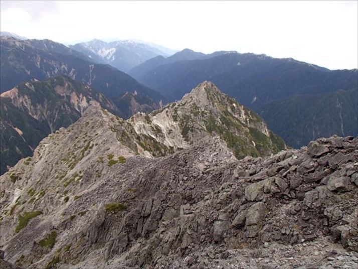 越えてきた縦走路ゴジラの背のようです