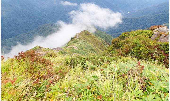 振り返ると登ってきた西黒尾根がくっきりと