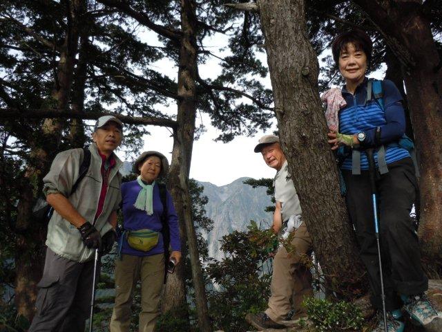 ちょっと休憩を。樹間から谷川岳を覗く