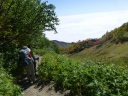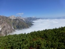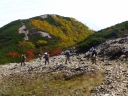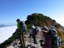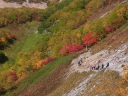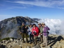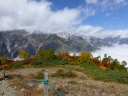 【期日】日時 2014年9月26日〜27日 【メンバー】L、SW、MI、NM、SA、ST 【コースタイム】9/26(金) 新座駅5:50⇒長野IC8:10⇒白馬八方ゴンドラ駅9:15/9:40 ⇒ゴンドラ⇒リフト⇒リフト⇒ 八方池山荘10:15/10:25→第二ケルン11:15 →八方池11:25→昼食12:00/12:20→扇雪渓12:40/12/50→丸山ケルン 13:20/13:35→頂上山荘14:25/14:35→山頂15:05/15:20→山荘15:45泊 9/27(土) 山荘8:00→丸山ケルン8:50/9:00→扇雪渓9:20/9:25→八方池10:25/10:40 → 八方池山荘11:30/11:40→ リフト⇒リフト⇒ゴンドラ⇒ゴンドラ駅12:10/12:15⇒みみずくの湯12:25/13:15⇒蕎麦酒房膳13:25/14:05 ⇒長野 IC15:35⇒新座駅18:40 記録:NM 【コメント】 (1日目) 北アルプス入門の唐松岳に行って来た。当初の計画では五竜岳まで行きたかったが、会のベテランSさ んの助言で唐松岳だけのピストンに決めた。Iさんには物足りなかっただろうが・・。平日の出発で高速道も空いてい て、早めにゴンドラ駅に着く。リフトの下にはもう秋の花も咲いていて、紅葉も見頃だ。八方池山荘から少し歩くと木 段が整備されていて、八方池までは歩きやすい。八方池まで来ると、白馬三山が間近に迫り、「わぁー ! すごい !」と 連呼。扇雪渓までの登山道から、鹿島槍ヶ岳と五竜岳も現れ、また、「わぁー !」 丸山ケルンで展望を楽しんだ後、 山荘目指して歩き始めたが、Tさんが「あの人、どこかで会ったことあるような気がする?」と言うので、思い切って声 をかけるとなんと!! 北海道黒岳の石室で一緒だった人だったので、またまた「わぁー !」で、しばし歓談 ? する。屋久 島の人でした。こんなことって あるんですね。 山肌を彩る赤や黄の紅葉に感激しながら山荘に到着。受付で手続きを済ませ、部屋にザックを置 き、空身で山頂に。快晴! 白馬三山・不帰剣・剣岳・立山等の展望!と眼下には雲海! こんな時間を持てる幸せに感 謝して山荘に戻る。 (2日目) 4:27のご来光を小屋の裏の山に登って見る。今日は下山するだけなので、ゆっくりの出発。土曜日なので 登ってくる人が多く、すれ違いに時間がかかった。八方池まで下りて周遊する。八方池山荘まで来ると、濃い霧が出 ていて寒かったが、ゴンドラ駅に着いた時には霧も晴れ、温泉に入り、新蕎麦を味わい、帰路についた。 天候・紅 葉・絶景・山小屋・温泉・蕎麦、行き帰りの渋滞もなく、満足できた山行でした。 NM記 |