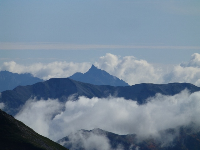 遠くに槍ヶ岳が見える