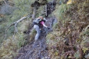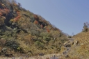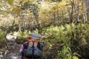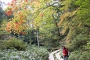 | 〔日 程〕 2014年9月27日(土)〜28日(日) 〔メンバー〕 L;T.K K.W 〔コースタイム〕 9/27 快晴 東武日光発(バス)9:45⇒竜頭滝発11:15→高山(昼食)12:40〜13:40→熊窪分岐 →幕張峠14:50→小田代歩道入口15:00→湯滝分岐15:30→湯滝15:50〜16:10→湯ノ湖16:30 →湯元温泉16:40(泊) 9/28 快晴 湯元発(車)7:45→金精峠トンネルP8:00→金精峠8:40 →金精山8:40→9:30→国境平10:15→五色山10:35→弥陀ヶ池11:30〜40 →白根山(昼食)13:30〜50→避難小屋14:20〜30→前白根山15:15→天狗平15:35 →登山口17:20 →湯元バス停17:30⇒バス17:45発⇒東武日光19:00 (記録;T.K) 〔コメント〕 1日目:高山 久しぶりの高山。 絶好の秋日和に中禅寺湖や草紅葉の戦場ヶ原を木立越しに見ながら登る。 男体山や日光連山も雲一つない。ツタウルシが真っ赤で鮮やかだ。 熊窪分岐からは白樺林が青空に映えて大好きな場所。 しかし鹿除けの電流柵がとても増えている。竜頭滝も湯滝も水量が豊かだ。 11時過ぎから登り出したので、夕方に湯元温泉の宿に到着。 呑気に大相撲を見てから入浴しようとTVをつけたら、『御嶽山大噴火』の映像に ビックリ仰天!! 何の前兆も無く、よりによって紅葉盛りの土曜日の昼に噴火するとは!痛ましい事だ・・・。 2日目:日光白根山 この山も火山だけれど・・・。 湯元側から登った事がないので、金精峠まで車で送ってくれる宿を探した。 朝食後、金精トンネルPに向かったのは私達二人だけだった。(1台千円) いきなりの急登連続で金精峠へ。見晴らし抜群。 随分前に鬼怒沼から根名草山〜温泉ヶ岳〜金精峠までを二人とも縦走している。 燧ヶ岳もくっきり見え、湯ノ湖、切込湖、刈込湖、菅沼、丸沼等日光の森と湖の光景を 楽しみながら気分良く歩く。 五色沼も空と同じ色をしている。 弥陀ヶ池に到着。 2007年「新座山の会15周年記念白根山集中登山」で、私達は菅沼から ここを経由して山頂で他コースと合流したのが懐かしい。 急に人が増え、岩場の急登を行き交うのも大変だ。ロープウェイで来る人も多いのだろう。 どこが山頂か分りにくい白根山には13:30着。 遅い昼食を摂り、ザレ場を急下降して、やっと平坦地になる。避難小屋前で小休止。 やがて見え出した白い岩塊の前白根を越え、天狗平に着く頃には私達二人だけになって いた。熊鈴だけが盛大に鳴り響く。 このルートはあまり歩かれていないようで、「急下降の悪路が続く」とネットで見ていた。 最初の30分くらいは「大したことないね」と言っていたが、そのうちガラガラ浮石だらけの 急な悪路になり、足の届かない段差があったり、一時も気の抜けない道が延々と続き 「もう勘弁してよ〜」と悲鳴を上げそうな頃、やっと湯元スキー場のリフト上に出た。 ヤレヤレ・・ 同行のWさんも「筋ツリが出なくて良かった〜」と一安心。 重いカメラをぶら下げてこの悪路を歩くのには感心する。 スキー場の草原には沢山の鹿が群れていた。 夕闇が迫る前、湯元発17:45のバスで帰る事が出来た。 美しい紅葉と湖沼群を見ながらのアップダウンの多い山行で充実感を味わった。 バスの中では二人共、御嶽山の噴火で知人等からのメール返信に忙しかった。 運命の分かれ道はどこにあるのだろうか? T.K;記 |