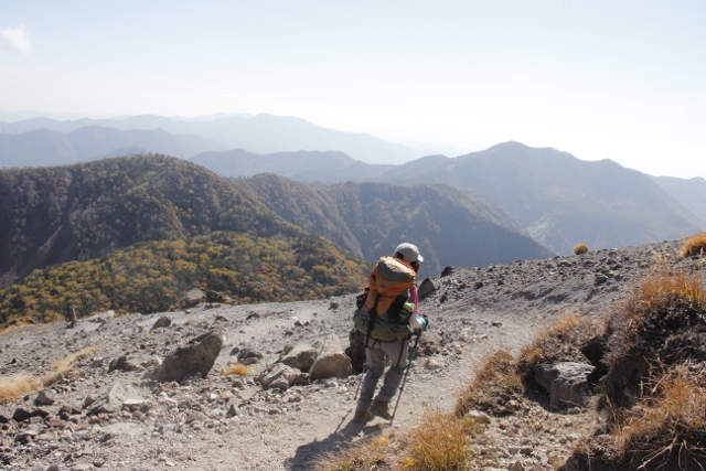 ざらざらの砂礫の道を下ります