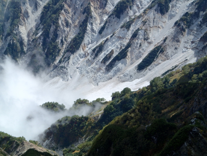 杓子岳から派生する尾根と大雪渓上部です