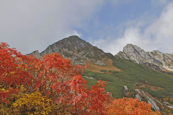 紅葉に映えるサキダルの頭と宝剣岳剣ヶ峰