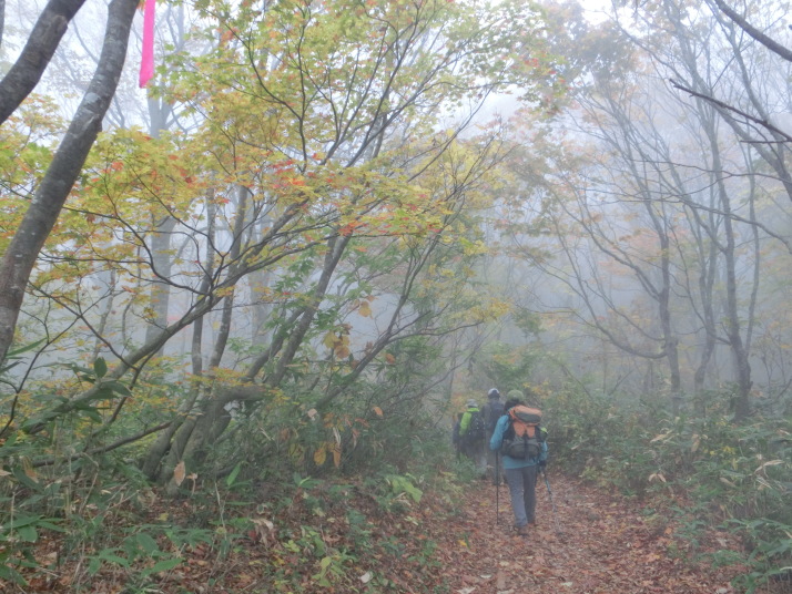 曇り空の中、なだらかな道を進みます