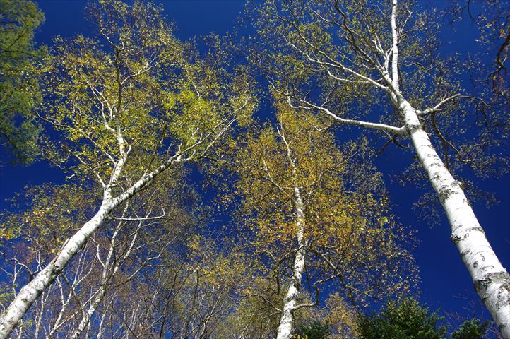 抜けるような青空に白樺も黄葉が始まっています。