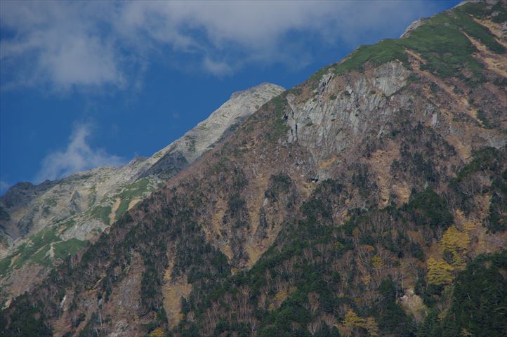 明神岳の稜線の向うに前穂高岳((3,090.2m)