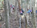 | 【期日】2014/10/29 【メンバー】CL YS,SL TM MS,SN,NM,YT 【コースタイム】 奥多摩駅8:10→8:25川乗橋 →9:20 細倉橋 9:28 →林道分岐 10:10→ 10:30百尋ノ滝10:35 →足毛岩分岐11:20 →12:20 頂上鞍部(昼食) 12:50 → 12:55川苔山頂上13:03 → 13:23本仁田山分岐 → 15:05大根ノ山ノ神 → 15:40鳩ノ巣駅15:44 【コメント】 秋晴れの暖かい日、奥多摩駅からバスに乗り川苔山に向かった。川乗橋で降り林道を暫く歩くと細倉橋に到着。 細倉橋からの登山道は橋の崩落で閉鎖の為迂回路を歩き登山口へ。 狭い登山道を暫く歩くと百尋の滝が見えて来ました。水量が多く木漏れ日の中流れ落ちる滝は見事です。 滝壺まで降りマイナスイオンをたっぷり浴びました。(百尋とは1尋 =6尺、1.8m) 稜線に出ると木々が色づいていました。山頂は視界が開けていて富士山や雲取山が良く見えます。 下山は檜の植林の緩やかな道を歩き大根ノ山の神、鳩ノ巣駅に降りました。 記:YT ※要 注意 9月26日川苔山頂上付近で熊の被害発生! |
