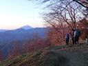| 【コメント】 かねてから石尾根を全部歩いてみたいと思っていて、昨年から計画していたコースであった。 2万5000分の1の地図をつなげたら全部で7枚になってしまい、その長さを改めて認識した。 11月14日 幸い天気は最高に晴れた。 サヲウラ峠まではつづら折りの急登が続き、後半は斜面をトラバースする地点があったが細い登山道が崩れかかっていた。しかも落ち葉が膝くらいまで吹きだまりになっている場所が多々あり、ストックで道を確認しながら慎重に1歩ずつ足を運ばなくてはならなかったため、思ったより、時間を取られてしまった。 危険箇所を抜けて広々としたサヲウラ峠についた時はほっとした。 前飛龍までの登りは急登だ。軽くはないザック(このコースには水場がないため各自1Lは余分に荷揚げしなくてはならない)を担ぎ、岩場に喘ぐ。前飛龍、飛龍を過ぎて雲取避難小屋を目指すがロングコースのため、時間との戦いだ。飛龍山からは尾根のピークの南側を巻く道で、たくさんの桟橋を歩く。途中、木々の切れ目から狼平の扁平な地形や反対側に石尾根の防火帯が見える。しかし、やっぱりはるかに遠い。疲労もたまってくるが、日も短く、ゆっくり休みを取ることはできない。たまの休憩にSさんが担ぎ上げてくれたフルーツの缶詰がとてもおいしい。後半は黙々と歩く。だんだん薄暗くなってきた頃、三条ダルミに着いてやっと到着時間のめどがたち、みんなで安堵する。あとは、1本道を登るだけ。暗くなっても道迷いはないだろう。 最後の急登を上り詰めて、日没ぎりぎりで避難小屋に到着する。 先客が6人。みな男性単独行らしい。 私たちを含めて今夜の投宿者は10人だった。 美味しい夕餉を囲み、労をねぎらい合い、早めに就寝する。明日もロングコースだ。 外に出ると満天の星。 そして夜景が素晴らしい。キラキラと本当に綺麗。 どこの夜景かわからないでいると他の方が立川だと教えてくれた。 11月15日 起床後、準備を整えて雲取山頂へ向かう。まだ真っ暗だが今日もロングコースであるため、すぐに下山して出発する。気持ちよく石尾根を下っていくと途中で夜が明けた。富士山もうっすら赤く染まり、今日も青空だ。途中、奥多摩小屋の親父さんと記念撮影をする。名物の猫もいた。七ツ石まで登ると、昨日登って歩いた尾根が一望できる。昨日と反対だ。昨日は石尾根を見た。遠くから来たなあと感慨深いが、もたもたしてはいられない。今日のゴールは奥多摩駅。しかも14時35分のバスに乗って丹波まで戻らなくてはならない。 最悪、エスケープルートは何箇所かあるが、できれば歩き通したい。 というわけで、今日もひたすら歩く。バスに間に合わないようなら元気な人が走って下りてバスに乗って車で迎えに来るという案も浮上しながら。(ん?運転手は絶対走るんじゃん) 鷹の巣山も登って最後の展望を楽しむ。将門馬場から六ツ石分岐を過ぎると紅葉がまだ残っている場所があった。三ノ木戸分岐まで下りてきてやっとバスに間に合いそうでホッとする。結局頑張った結果、予定時間より30分も早く着くことができ、バスの出発を1時間待って丹波まで戻った。のめこい湯のお湯が最高だった。 2日間とも天気に恵まれてロングコースの素晴らしい展望の縦走を経験することができた。 (コメントMS/woman) |