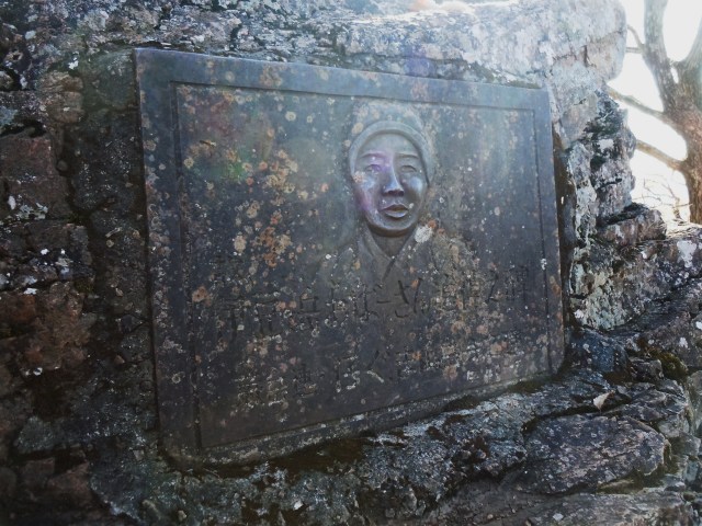 伊豆ヶ岳山頂手前にある「伊豆ヶ岳ばーさん」のレリーフ