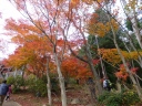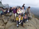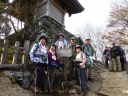 【期 日】 2014年11月30日(日) 【メンバー】 CL/S.W、M.I、S.A、H.A、S.T、S.F 【コースタイム】 新座6:00⇒筑波山駐車場8:20→筑波神社8:40→ロープウェー分岐10:00 →女体山10:55 →御幸ヶ原11:20〜12:00(昼食)→男体山12:15 →筑波山駐車場14:20(入浴)⇒新座19:20 【コメント】 筑波山は初めてで、以前から行きたい山だった。 筑波神社駐車場から女体山頂へ向かう。岩稜帯で結構険しく、足の短い私には段差があり、 距離2,8キロ、標高差610メートルがかなり長く感じられた。 人気の山なのか、家族連れが多く、すれ違うのも大変で譲り合いながらの歩行となる。 北斗岩、裏面大黒、出船入船、母の胎内くぐり、怪石が次々と現れる。弁慶七戻りは、 今にも落ちそうな大石が道に被さっていて、さすがの弁慶も行こか、戻ろか思案したそうだ。 眺めながら歩いていると飽きる暇がない。 女体山は大きな岩稜で、頂上は狭く、人も多く、早々に眺望して写真を撮り、御幸ヶ原に戻り 昼食、男体山に向かう。 イザナギノミコトを祀る本殿にお参りして、筑波山駐車場まで下る。途中カエルにそっくりな ガマ石(雄龍石)に出会う。 前日の雨で、山道は滑りやすく慎重に下山する。 ケーブルカーの終点、宮脇駅は紅葉が素晴らしく、しばし堪能する。 お風呂に入り帰路に着く。 S.F/記 |