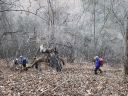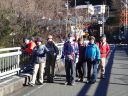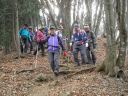 | 【期 日】 2014年12月14日(日) 【メンバー】 CL HS SN,TM,SN,IK,SA,YT,YS,YY,AY,TH,TK,ST,NK,SO,JI,MI, MI,HY,SA, ES,KU,SK,TK,MK,JK, 【コースタイム】 梁川駅着8:01−梁川駅発8:34−立野峠10:35−倉岳山山頂着11:20−昼食− 倉岳山出発12:00−天神山12:25−高畑山山頂着13:00−穴路峠14:20− 鳥沢駅着14:40 【コメント】 今年の忘年山行は、倉岳山と高畑山でした。 今回は梁川駅から出発しました。人数が多いの で三つの班に分かれて、班の間隔を少しあけながら登りました。ペースがゆっくりだったので、倉岳山もそんなに苦労することなく登ることができました。頂上で写真を撮り、早めの昼食にしました。風がなく比較的暖かでした。 高畑山へは、一旦下り、登り返して天神山に着き、また下って登り返して、ようやく頂上に着きました。途中、霜柱の花が所々に咲いていて、一つ一つの花(?)の形が違っていて、きれいでした。 高畑山から眺めた富士山は雲がかかっていて、残念ながら頂上が良く見えませんでした。休憩してから下山しましたが、急な下りを過ぎた後は、なだらかな下りが続き、またまた霜柱の花がたくさん咲いて(?)いたので、写真を撮ったりしながらゆっくりと下り、鳥沢駅に無事に下山できました。 登りがいのある山でした。18時からは、大勢の参加の下、恒例の忘年会が盛大に行われました。 Y/S記 ※「霜の花」 霜柱(シモバシラ=雪寄草(ゆきよせそう))と言う紫蘇科の植物が冬になると、枯れた茎の根元に”霜柱”のような「氷の結晶」ができるところからこの名になった。 (ふつうによく見かける”霜柱”とは別の自然現象)。 「シモバシラ」は多年草なので、冬に地上部が枯れたあとも地中の根は毎日24時間活動し続けている。それ自体は他の多年草と同じだが、「シモバシラ」の場合は、地上部が枯れてからも、枯れる前と同じように地中の水を吸い上げて茎の上の方まで送り続けている。 (「シモバシラ」は、水分を吸い上げる管の部分が頑丈なのでこうなるらしい。不思議♪) だそうです!? |