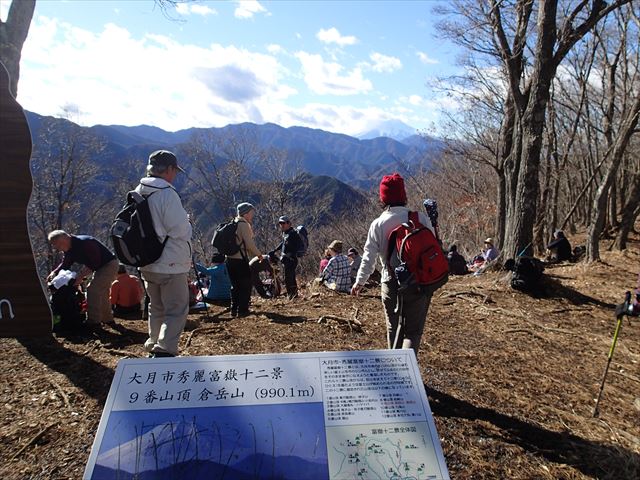 倉岳山(990.1m)の頂上は展望が開けた向うに富士山が待っていました。
