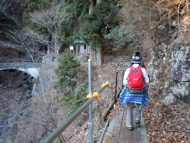 二重社に到着。二重滝や橋がとても味があります。