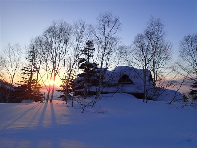 ヒュッテにも朝陽が射してきました
