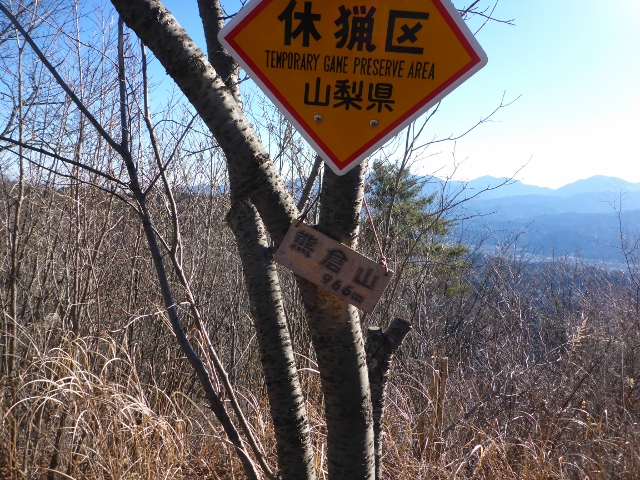 熊倉山の標識の向こうは丹沢の山々