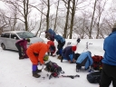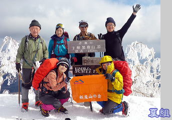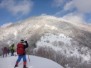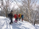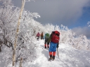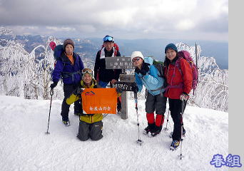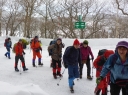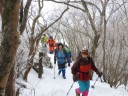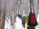 【日 時】 2015年1月25日(日) 【メンバー】 春組 C.L/A.Y、P.L/M.N、K.W、N.K、K.K (5名) 夏組 S.L/M.S、P.L/N.U、S.O、H.S、M.I、Y.I (6名) 秋組 P.L/Y.Y、P.S/M.S、J.I、E.S、J.K (5名) 冬組 P.L/M.K、P.S/Y.T、T.K、S.N、I.K (5名) 【コースタイム】 赤城おのこ駐車場発 9:10→ 黒檜山登山口発 9:40→ 黒檜山着 11:00 → 黒檜山発 11:45→ 駒ヶ岳着 12:40→ 赤城おのこ駐車場着 13:25 (記録;Y.I) 【コメント】 登山口からほぼまっすぐに赤城山主峰の黒檜を目指す。 今回はリーダ−の作戦?で4つの小班編成で行動。 これがまた、班のまとまりも持てたし、 それぞれが先頭を歩くことでお互いを気遣い、 個々に責任を持てたのでよかったと思う。 登り出しは天気が良いというほどの空の色ではなかったが風がないのが幸い。 ほぼ無風。 3年前の同じルートの会山行は風速15mくらいの風で、山を楽しむというより逃げるように 山頂を踏んで下山した。 中腹まで行った頃、木々の間から青空が見え、凍った大沼が光って見えた。 黒檜山頂付近で日差しをいっぱい浴びて昼食を取り、そのあと駒ヶ岳山頂を通過、 結局は下山するまで、特にトラブルもなく、 今回の山行は、ほぼ無風で素晴らしい景色と 青い空、白い雪稜を楽しめた (M.N;記) |