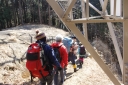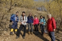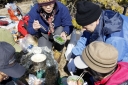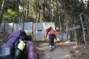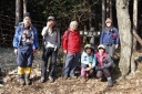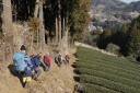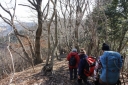 | 【日 時】 2015(H.27)年 2月11日(水/祝日) 【メンバー】 L;M.U、T.K、Y.Y、K.W、Y.I、S.K、T.I(会員外) 〈7名〉 【コースタイム】 北朝霞6:48→小田急新松田駅8:43着→寄(やどろぎ)BS9:20着⇒大寺橋9:40 ⇒登山口(猪除け柵)10:05 ⇒水場10:20⇒シダンゴ山(昼食)11:00~12:15⇒秦野峠分岐12:15⇒タコチバ山(688m)12:50 ⇒宮地山(512m,お汁粉タイム)13:00~13:25⇒宮地山と寄分岐に戻る13:30⇒車道13:50 ⇒寄BS14:00→シャトルバスで「寄ロウバイ園」見学14:10〜15:00⇒寄BS15:40発 →(バス)→小田急線新松田駅16:05着16:23発→北朝霞18:19 記録;T.K 【コメント】 丹沢山塊の南端近くにある「シダンゴ山(やま)」、変わった名前だと思うのは私だけだろうか。 仏教の仙人の名前が由来だという話をKさんから聞いたが、本当だろうか? Uリーダーに誘われて久しぶりの丹沢に、Wさん、Yさんと御一緒するのも個人山行では 久しぶりです。 Kさんとは「最近良く会うわね」と言われたが、実は追っかけです。Iさんは御主人が御一緒、 初めまして。 小田急線・新松田駅のバス乗り場で待ち合わせる。全員そろった頃には長い列になっていた。 『ロウバイまつり会場行きの臨時バス』が2本先に発車するが乗客は少なかった。その後に、 定刻より10分ほど早く、寄(やどろぎ)行きの臨時バスが出るというので乗車した。 大半が登山者で通勤時なみの混雑だ。 私は座れたが、みんなは?予定していた定刻のバスに全員で座って乗った方がよかったか? 終点の寄バス停に着いてビックリ、ここがロウバイまつり会場行きの臨時バス到着地だった。 そう説明してくれれば先に出たガラガラのバスに乗ったのに。 バス停から、まず大寺橋を渡る。橋の手摺に鉄琴が付いていて、順番にたたくと、 「お馬の親子」が聞こえる。 その先の茶畑を縫う舗装された道が本日最大の急登だった。猪防護柵の扉を通ると、 ホッとする登山道になる。 かなり登った所で林道に出くわす。 駐車スペースも十分でマイカーならここまで歩かずに来られる(いいな)。 疲れてきた頃に水場に着く。水はチョロチョロ程度だがYさんが汲む「晩酌の水割りの為」に 持ち帰るそうだ。 登りながら「この花は・・・、この木は・・・」と自然観察も満喫、写真もバッチリ。 皆さん花や木に詳しい。私は登るので精一杯だし、針葉樹と広葉樹の区別しか出来ない。 ヘトヘトになった頃に山頂に着く。好天で付近の山が良く見え、地図とシルバコンパスを出して 山座同定。 富士山がチョッとしか見えないのが残念だが、陽当たりの良い山頂は心も和らぐ。 ただし時々遠くで「ドーン」と音が聞こえる(自衛隊の大砲かな?)。 昼食に、食糧担当が担いで来てくれた材料でちゃんぽんを作る。百円ショップの天ぷらガードで コンロを囲むと風除けだけでなく、熱効率も良い(と私は信じている)。 サラダ、焼き豚、お浸し等、毎度ながら皆さんのお裾分けを頂く。 最後にイチゴまで御馳走になり、とっても贅沢なお昼ご飯だった。 ゆっくりの昼休みを終え、「さあ下山だよ、気を付けて」と声をかけて、再スタート。 ぬかるんでいて滑る、一部凍っている所も。 しばらくの急下降で秦野峠方面との分岐に到着。 そこからしばらくは歩きやすい、のどかな登山道で、樹木の葉が落ち見晴らしも良い。 夏は見通しが効かずに暑いから、冬に来てよかった。 宮地山・山頂直下の寄との分岐から西に回り込み山頂に到達、金網が張られ尾根通しには 歩けない様だ。 ここで2回目の大休憩、お汁粉を作る。山頂っぽく無い所だが、南面が開け海まで見渡せる のどかな場所だ。 宮地山からの下りが最後の難所だった、今までとは違う細い道で、ぬかるむ。 滑ったらズボンが泥だらけになるので必死でバランスを取り歩く。 防護柵の扉を通るとしばらくで茶畑に出て、今朝渡った大寺橋を渡り、寄バス停留所に 無事帰着。 時間があるので、ロウバイまつりを見学した。 春を先取りし、色々と御馳走になった、とっても楽しい山行でした・・・。 この次も誘って下さいね。 追伸:帰りの小田急線・新松田駅で、先に来る相模大野行き急行と後から来る新宿行き急行の どちらに乗ろうか迷っていると、通りかかりの職員が乗り継ぎを調べ説明してくれた。 とっても親切な小田急鉄道に感謝。 S.K;記 |