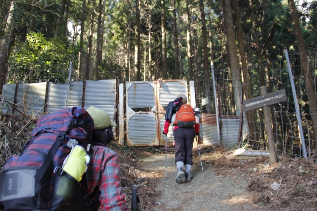 猪除けの柵を開けて登山道に入ります