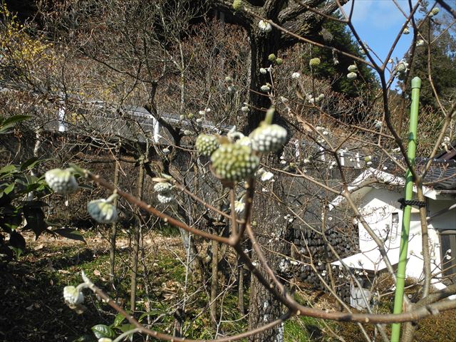 紅い三椏のつぼみは未だ固かった