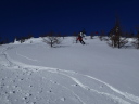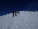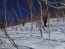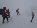 | 【期日】 2014年2月15日〜16日 【メンバー】 CL/S.A R.K S.K N.S 【コースタイム】 2月15日 新座発6:10―9:20菅平奥ダボス駐車場 天候が悪いため午前中は下見見合わせ、ゲレンデ滑走 リフト終点13:15―13:55避難小屋14:25―14:50 奥ダボス駐車場 2月16日 菅平・峰の原S山荘発8:00−車−8:40あずまや高原ホテル 出発9:00―50分ごとに休憩―11:50眺めの良い山腹― 12:25稜線12:40―14:00四阿山山頂14:10 ―15:30 あずまや高原ホテル 【コメント】 Sさんの菅平・峰の原の山荘に泊まっての合宿下見山行です。 15日・・合宿本番と同じ時間帯でどのくらいかかるか4名乗合で新座発、日曜日の朝 でしたが順調に菅平に到着しました。 早速1日目の根子岳登山の準備にかか りましたが強風と雪とガスでどうにもならず、しばらく見合わせということに して昼まで菅平中のゲレンデをSさんガイドで滑りまくり、昼食。 午後に入り幾分風が弱まり、雪も止んできましたので、取り敢えず避難小屋 までは、いうことにして出発しました。 K.K.S氏はシール登行、Aはスノーシューです。整地してあるところの新雪 は10センチ程で傾斜もなく問題はないものの見通し悪く、横にそれると結構 潜る状態でした。それでも難なく避難小屋に到着し中に入り休憩、やはり今日 はここまでとしてスキーを履いて下山しました。 4人の足並みがそろっているのでコースタイムよりはかなり早く、リフト終 点から40分ほどで避難小屋着、距離的には半分近くです。全体で頂上直下を 除けば比較的傾斜が緩いものの、登りはここからですので頂上まではあと早く ても1時間以上はかかるでしょう。 問題はやはり天気次第で、風とガスに要 注意ということでの下見一日目となりました。 レンタルスキー及びスノーシュを借りるショップとバスの駐車場等を確認し Sさんの山荘へ、夕食は菅平のメインストリートにあるロシア料理店で楽しみ ました。 16日・・6時起床、清掃・準備をし,あずまや高原ホテルへ向けて出発、途中コンビニ で行動食を買い(当日ここで購入可能かどうか確認?)菅平から山腹を通って 行ける近道が通行可能かどうかを調べながら(結果的に可能)、ホテル着、登 山届を出して四阿山へ向け出発しました。 天気は快晴、絶好の登山日和です、平坦な雪の林道を20分ほど進み牧場へ 出ると一面の銀世界、さすがに天気は良くても風が強いのがこの辺りの冬の特徴で、傾斜は緩いものの結構風に影響されながらの前進です。やがて林に入り傾斜も出て、新雪のラッセルでの登行となりました。10センチ程潜りま すがシール組は問題なし、スノーシューでの登行はシールの後でも一歩一歩 少し潜りだんだん疲れがたまってきます。やがて眺めの良い地点に出て北ア ルプス連山を眺望できる素晴らしい場所で休憩しました。50分に一本程度の 休憩ペースで登行を続け、稜線手前で後続の単独行(スノーシュー)に抜かれ、 これはラッキーと思いながら稜線直下で大休止をし、頂上へ向かいました。 このころより風も弱まり云うことなしでしたが、なにぶんにも老人4人組で すので各々に疲れがたまることによる足の障害が出始め歩きにも支障が出始 めましたが、何とかちょうど5時間かかって四阿山山頂に到着しました。 360度の大眺望、富士山も見え大感激です。さすがに温度が低くここでの集 合写真をセルフタイマーで撮ろうとしましたがシャッターが凍って撮影できず驚きでした。 スキーに履き替えアルペンスキー2名、テレマークスキー2名で楽しい滑走が 始まりましたが、太陽の雪面への照り付けと午後も2時を過ぎていたこともあ り思いのほか雪の状態が重くアルペン組はともかくテレマーク組は苦戦とな り特にAはスノーシューでの疲れも出て大苦戦となりました。 途中、下山のルートを確かめながら1時間20分ほどでホテルに到着、ホテルマネージャーと当日の打ち合わせをして温泉入浴、充実した二日目の楽しい下見登山となりました。 厳冬期に四阿山を完全に登り、スキーで滑走することは実に大変な山行です。 それを難なく実施できたのは各人の体力はもちろんですが、ほかならぬ天気で した。快晴でも強風では登れません、ガスが出れば下部はだだっ広く、どこを 歩いていくか全くわからなくなるでしょう。登りはまだしも下りは大変厄介と なります。そのためGPSは必携、景色が見えない地図読みも必要となるでし ょう。 当日は、今回の下見山行を検討し、特に四阿山の登山についてはさらに慎重 を期して臨みたいと思います。 日本百名山の一つですから、ぜひとも登りたい山、しかも積雪期となればなればなお更だと思いますが、種々の状況判断により安全で楽しい山行をした いと考えていますので、宜しくお願いをしておきます。 (CL/ S.A) |