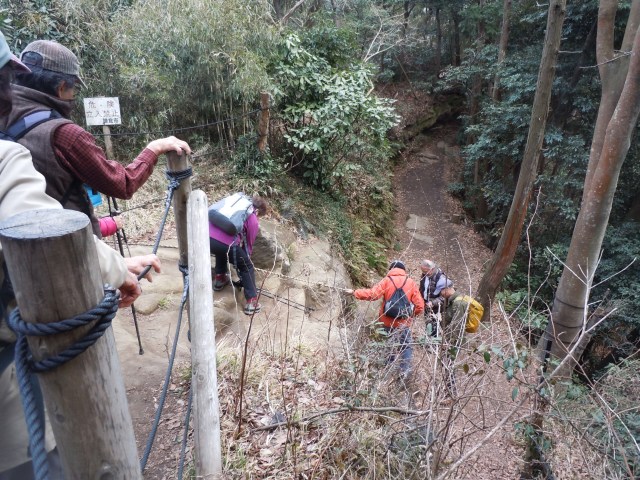 出発しました! 登山道にはこんな急な所も(ロープ)。ゆっくりと~ね。