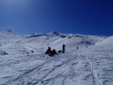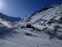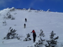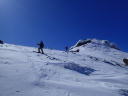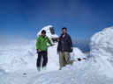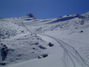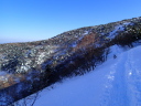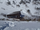 【コメント】 郡山へ単身赴任中の昔の職場の後輩H氏宅に世話になり、猪苗代で一緒にスキーをし て、安達太良山へは単独でスキー ツアーを楽しむつもりが、この時期まれにみる好天が 予想され(実際に一日中無風快晴)、急遽、後輩をガイドしながらの山行 となりました。 ルートは一昨年の夏合宿で辿った奥岳登山口から山頂を経て、くろがね小屋を経由し て一周してくるコースです。 又、来年 の冬山合宿の候補地になっている山でもあり、 偵察を含めての良い機会と思い行ってきました。 朝陽を浴びながら軽四輪で郡山市内〜奥岳登山口へ到着、いくらか情報はあったもの のゴンドラが運行停止(今年から?) で、リフトを乗り継いで山に向かって右の尾根に取 りつく地点で各々シールとスノーシューを履き出発です。 いきなり急斜面の新雪でした がトレースもあり20分程で五葉松平へ続く稜線着、天気は快晴、風もなく最高の気分 の中、 木々の間を抜けながら更に1時間程でゴンドラから山頂へ続く尾根に出て休憩、 積雪は1.5m程で上部は少し硬雪となってい ましたが、さほど傾斜もなく難なく山頂に 昼前に到着しました。 天気が良くても風が強く特に山頂付近では、どうにもままならずというのが安達太良 山の冬山の普段ですが、その風もそよ 風程度で何とも良い気分です。 念のためスリング をH氏に装着、乳首山頂へ登り360°の大眺望を楽しみました。 ゆっくりと昼食をすませ、くろがね小屋へ 向けてスキー滑走ですが普段風が強いだけ にしばらくは積雪量が少ない斜面を滑って行かざる負えず、雪の下に隠れてい る岩にスキー板底をガリガリ、ヒヤヒヤの要注意滑走でした。 山頂からのルートは見通しが良すぎるぐらいで間違えようがありません。下るにした がって積雪量が増えてきましたが、 あまりの天気の良さで雪が重くなり、終いにはボー ゲンでの滑走を余儀なくされ、30分程でくろがね小屋に到着しました。 なかなかモダンな小屋で居心地もよさそうです。 ここでゆっくり硫黄温泉入浴タイム、 あとはトラバースと下りですから運転はH氏に任せることでビールで一人乾杯、管理人 さんに来年予定(未決定)の冬合宿の件を話しいろいろ伺ってきました。 1時間半ほど の休憩を取り出発、勢至平を経てスキー場のある奥平登山口に戻りました。 勢至平からの林の中の下りは雪が多く潜ったり、スノーシューのトレースで溝がで きていたりでスキーでは滑りにくく、 今山行中一番厳しい下山となりました。 ※くろがね小屋情報 県営、50人収容 一泊二食付(入湯税含)6,630円、 素泊まり4,270円、 自炊可 テント設営は現在OKしていない(団体の冬山訓練でのみ可) (S.A) |