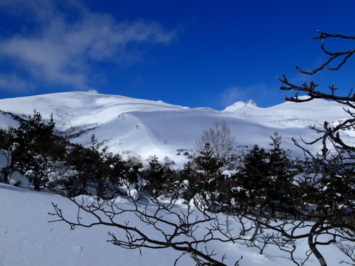 五葉松平からの安達太良山頂(左)