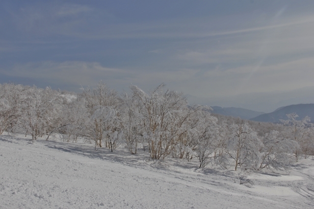 木々に雪がついてキラキラ光っています
