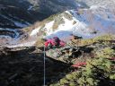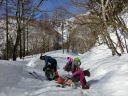 3/20 しばし素晴らしい眺望を楽しんで登頂を喜び合う。慎重に下山し、テント撤収する。帰路は下に行くほど雪が緩んでいて踏み抜きに皆苦戦したが、天気に恵まれて充実した山行であった。 |