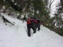 3/20 6:00信州健康ランド発→6:30波田駅着(タクシーに乗換え)・7:00発→8:00釜トンネル発→9:00西尾根取付き着・9:15発→12:30標高1950m付近着・整地・テント幕営・昼食 3/21 5:45テント発→6:45 2250m地点着→9:00霞沢岳山頂着→9:35山頂発→11:50テント着〈休憩・撤収〉→12:35テント場発→14:05西尾根取付き着・14:25発→14:55釜トンネル出口着→15:10タクシーにて波田駅へ |