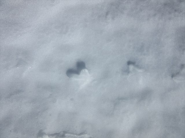 雷鳥の足跡を見つけました、ハート型に見えます