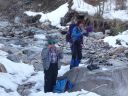 地味だけれども、木曽路にそびえる恵那山は、島崎藤村の「夜明け前」にも描かれている山だ。本当は華やかな木曽駒ゲ岳に登る予定であったが、まだまだ雪が深く、問い合わせした千畳敷ホテルの方も「状態はまだまだ立派な冬山上級者コース」と教えられ、それではと選んだピンチヒッターの山だった。 広河原口から入山。ゲートから歩き登山口に行くが、この林道がひどく荒れており、時折、幼児の頭位の石が落下してくる。登山道入口に着き、そこを急下降し、橋を渡る。 ここから雪道でアイゼン装着。急峻な樹林帯を赤テープ頼りに登ります。やがて、樹林帯を登り切り、少し緩やかな傾斜になると、左に大きく張り出したセッピ地帯にでる。見事なセッピに目を奪われる。ここは360度の展望が臨めた。天気は雲ひとつない晴天。その素晴らしい山々や空を仰ぎ、山座同定したり、感動! 美しい写真を何枚も撮るために足が止まる。やがて、山頂と思しき展望櫓。しかし標識がない。さらに進み、避難小屋から、大岩があるところの山頂も踏む。でももう少し先に本当の山頂があるのではないかと、リーダーが偵察に行く。しばらくして、「山頂があった、眺めが抜群」という報告を受け、私達も10分程度登り返し、さらに先を歩いた。前方、東の方角に、神社の屋根が雪にうずまりその一部が何とか顔を出しわかる程度であったが、展望台のような小さな頂点の場所に着いた。ここが、一番高い標高だ。ここも、素晴らしい展望だ。私達は、3つの頂点にタッチしたことに大満足!。 下山は、セッピに気をつけ、また、午後になり緩んだ雪道を踏みぬかないよう気をつけて歩く。川音が聞こえ、林道が見え、朝来た橋に着きほっとした。長かった〜。 帰りは月川(げっせん)温泉に寄る。この温泉は阿智村役所のお勧め温泉でした。 雪山の恵那山は本当にきれいで、天気に恵まれ眺望抜群の満足の山行でした!!(N/K記) |