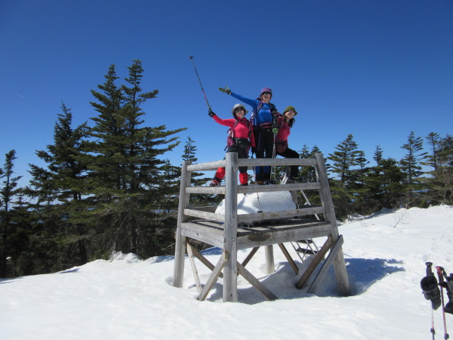 やっと、頂上!標識は雪の下です