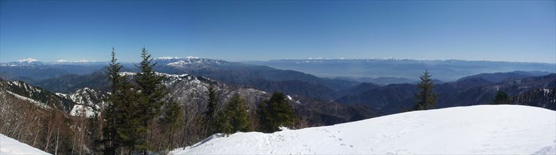 木曾駒をはさんで左から御嶽・乗鞍、右に南アルプス