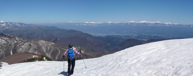 雪庇の横を下る