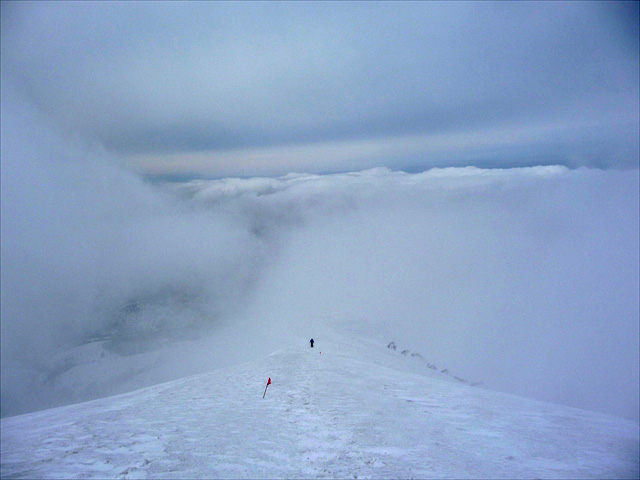 ガスの中、こんな所を登ってきました なんだか天国のようです