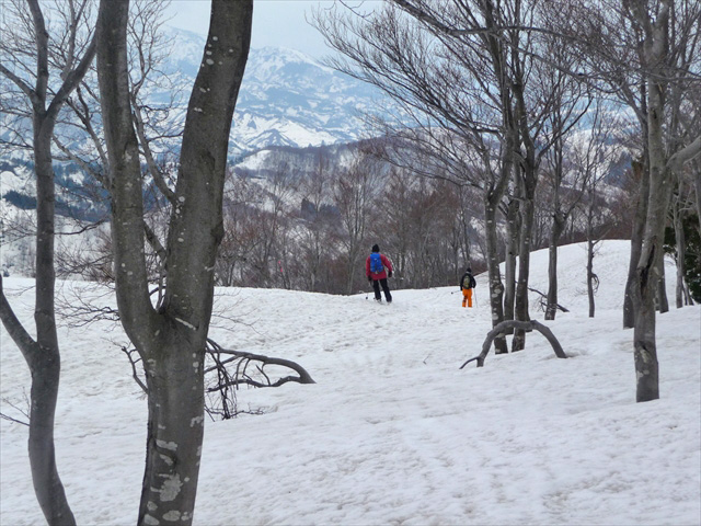 長峰からはかっこよく山スキーで先行