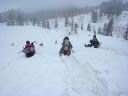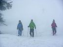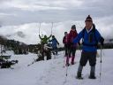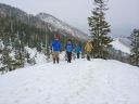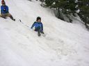 | *10日(金)曇り 6時新座集合(A車・I車に分乗)→上信越道→更埴IC→オリンピック道路→ ヒュッテ管理人宅→栂池高原駅(ゴン ドラ・リフト)→12時30分S大学ヒュッテ着 ゴンドラ駅前で今回の食糧等を各自手分けして持っていよいよスタート。 Mさんは重たい写真機材を持参して元気はつらつ。女性陣の眼の輝きの美しい?こと。私は運転が終わりヤレヤ レ状態。ゴンドラから見る山々はまだまだ冬山。雨が降らなくてよかったです。ヒュッテは屋根の雪は全部落ちてま したが、周りが雪だらけ。 窓の前面だけでも雪かきしないと景色を楽しめないので、リーダーは昼食の準備で台所に入り、われわれ客人? は除雪作業に精を出しました。後立山連峰の絶景を見ながらの雪かきは楽しかったですね。 子供の頃に店頭の雪かき、屋根の雪下ろしをやっていたので私は苦になりません。皆さんもワイワイガヤガヤ楽し そうでしたね。昼食はうどんでした。手がかかっていてとても美味しかったです。リーダー山男の料理はたいした もんですね。私にはとても真似ができません。 ヒュッテは電気も通じていて、沢からひいた水がとても豊富でトイレは水洗です。 食後に栂池自然園の入口付近まで散歩に行き、明日の足慣らしと雪中行進、尻セードの練習、誰もいない広大な 雪原を楽しみました。夕食はカタカナ文字のなんとかと言う料理でした。思い出せなくてすみません。美味しくて 食べすぎ飲みすぎで夜中苦しみました。 (記 M/I) |