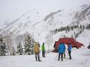 *11日(土)曇り・霧・晴れ 7時朝食→9時05分出発→10時30分天狗原着(2204m)・11時20分まで待機 →ガスっててホワイトアウト状態に なってきたので下山開始→12時10分ヒュッテ着 朝食は有名な神戸屋のパンと、なんとかのカタカナ料理。 美味いね。さらにサンドイッチみたいにしてラップに包み、昼食用としてもいただきました。 感謝感激!料理センスがない私には絶対無理です! 曇りの予報なので様子みのゆっくり出発。 天狗原のお宮さんまで来たのですがガスってきました。 ようす見で近くに待機したのですが、ホワイトアウトが怖い ので下山開始。登りはスノーシュウ、下山はつぼ足。 ベテランリーダーの判断は信頼感抜群ですが、頂上まで行きたかったのであ〜残念無念!午後にリーダーの学校 仲間が5人みえました。50代〜60代の男性で、うち2人は独身とのこと。リーダーは夕食の準備と仲間との再開で忙 しそうなので、我々5人で栂池自然園を散策に行く。徐々に天気も回復してきました。 広大な雪原を歩いていると日本じゃないみたい。不思議な感覚。 小高い山に登ると雲が流れてきて、切れ目から後立山連峰の山々が現れてきました。小蓮華・白馬・杓子・鑓ヶ岳・ 唐松・五竜・鹿島槍・爺岳の冬山〜神々の峰々。寒さも時間も忘れる絶景です。Mさんは撮影に夢中でした。 ※刻々変化する山容を見逃しては今度何時見られるか?一期一会の瞬間です。(記:T/M) 夕食は生姜焼とイタリア風のカタカナ料理、私には分からない料理が沢山出ました。リーダーは料理も達人です。 仲間持参のお土産も沢山ならび美味い美味い。 そして「久保田の万寿」幻の日本酒です。 きりりさらり極選の味、いいね〜。合同宴会もにぎやかで、金持ち独身男 性は女性陣の酒の肴、餌食になり大いに盛り上がりました。 天気も回復し今夜は満点の星空 ― 外にでて寒さも忘れて見続けましたが、Mさんは三脚を立てさらに長時間の星空撮影、もう夢中です。 ― 極寒の中すごいですね! (記 M/I) ※こんな星空を見ずして、いつ見るのよ!! この為に重い三脚を持ち上げ、撮影の方法もいく通りか練習をしてきました、こんなに星があったのかとダイヤモンドを散りばめたような星空を寒さを忘れて眺めました。(記:T/M) |