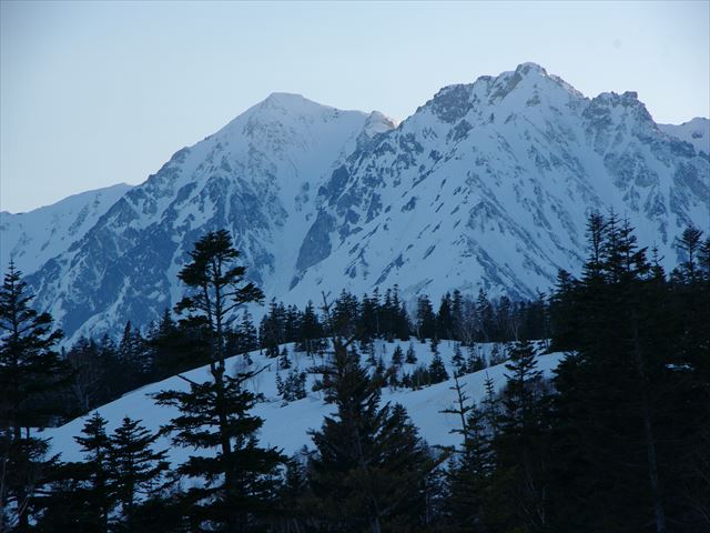 夕映えに美しい鑓ヶ岳・杓子岳♪♪