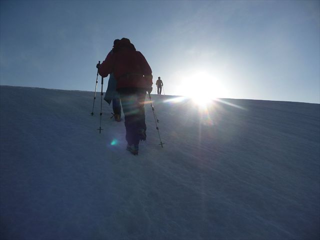 朝日に向かって登る