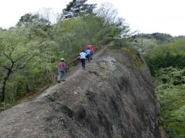 会山行 岩場と鎖場と仏像と大展望の山 期日 : 2015年4月19日(日) 五ノ峰で→ |